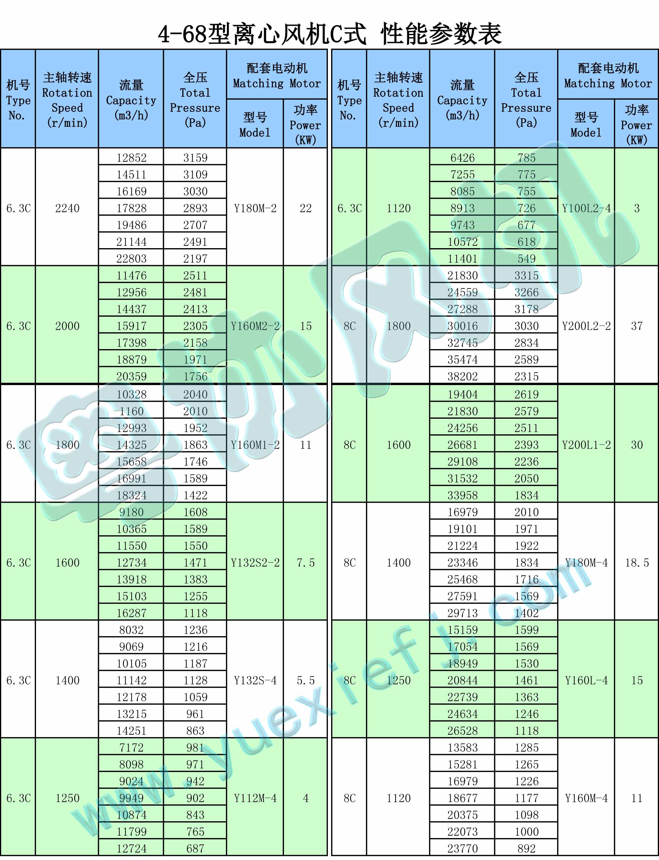 4-68C型離心風(fēng)機(jī),一般用于工廠或較大建筑物的通風(fēng)換氣,它既可輸入氣體,也可輸出氣體。它輸送的氣體為空氣或其他不自燃、不揮發(fā)、對(duì)人體無(wú)害、對(duì)鋼鐵材料無(wú)腐蝕之氣體。氣體內(nèi)不得含粘性物質(zhì),所含塵土及硬質(zhì)顆粒物不大于150mg/m3。氣體溫度不得超過(guò)80°C。
