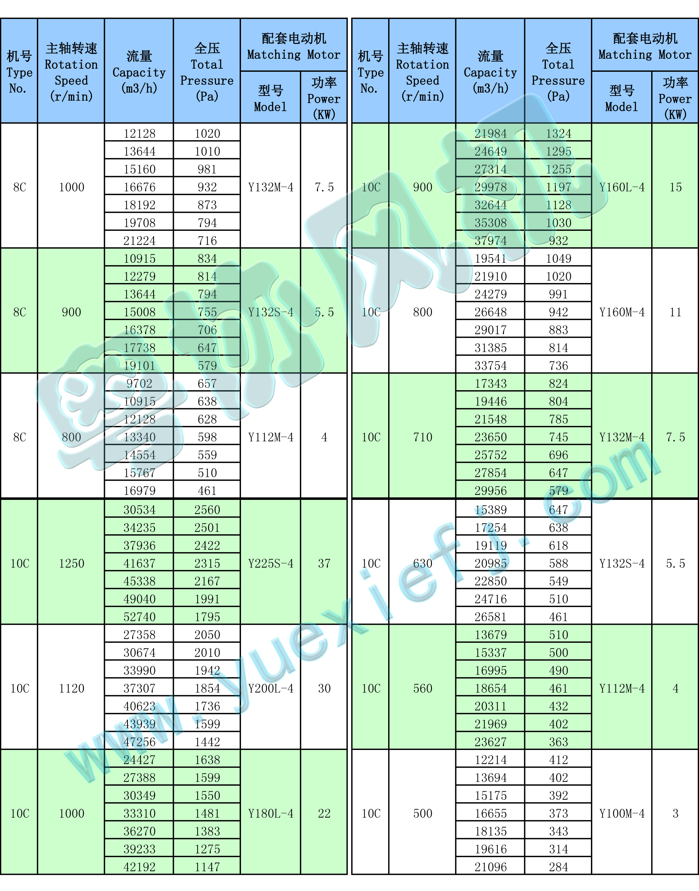 (2)離心風(fēng)機(jī)機(jī)殼:其中№3~12機(jī)殼制成整體;№14~20的機(jī)殼制成二開(kāi)式,沿中分水平面分為兩半外,用螺栓連接。
