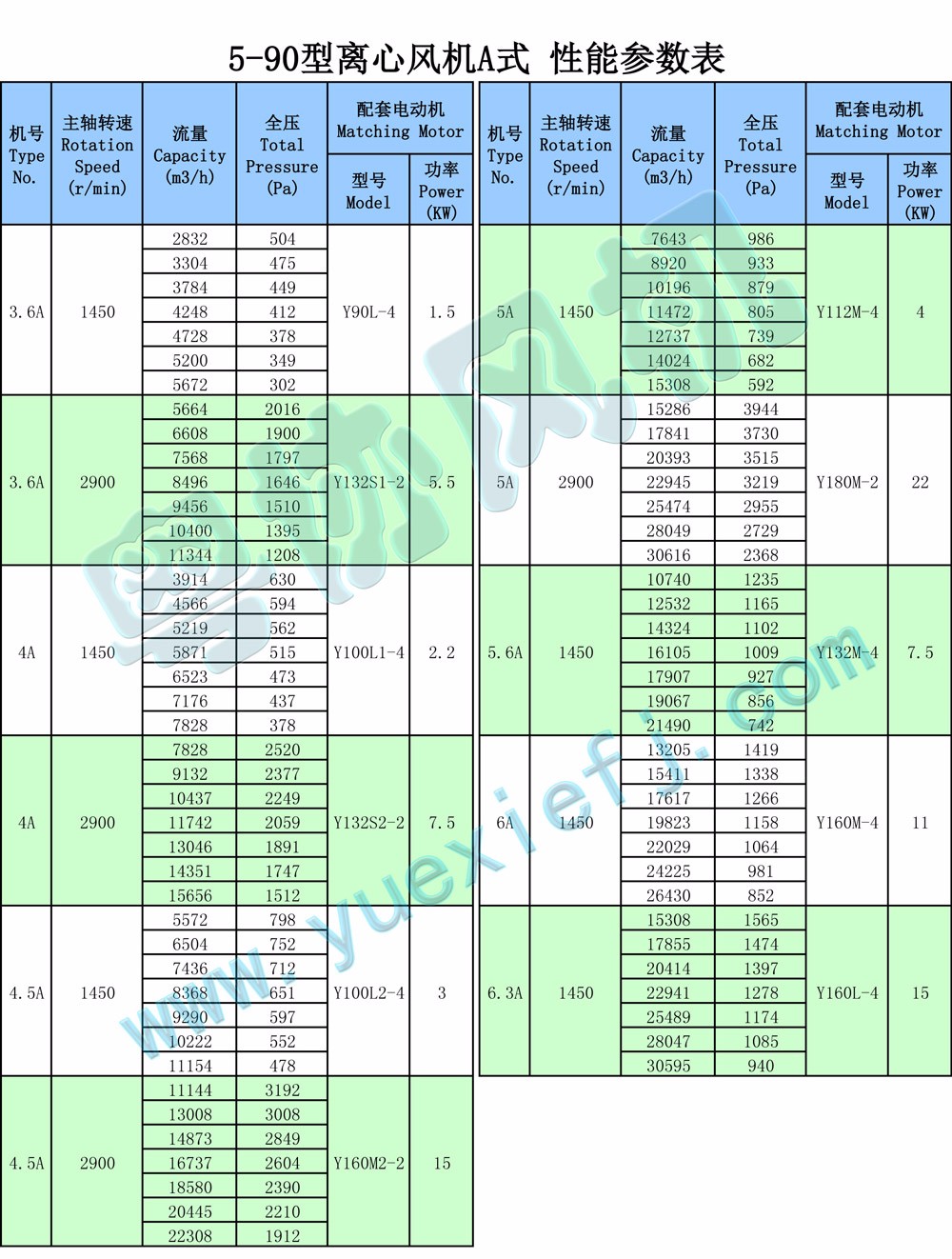 5-90A式離心通風(fēng)機(jī),一般用于工廠或大型建筑物的室內(nèi)通風(fēng)換氣,它既可輸入氣體,也可輸出氣體。它輸送的氣 體為空氣或其他不自燃、不自爆、無纏繞性、對(duì)人體無害、對(duì)鋼鐵材料無腐蝕之氣體。氣體內(nèi)不得含粘性物質(zhì),所含塵土及硬質(zhì)顆粒物不大于150mg/m3。氣體溫度不得超過80°C。其他性能相近者亦可選用。